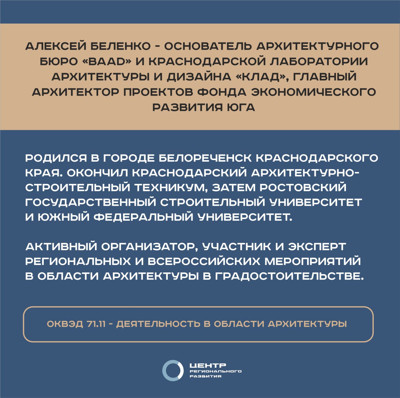 Главная / Деятельность / Креативные (творческие) индустрии / Проект «Креативный Юг: вдохновение, инновации, развитие» / Алексей Беленко - архитектор Алексей Беленко - архитектор