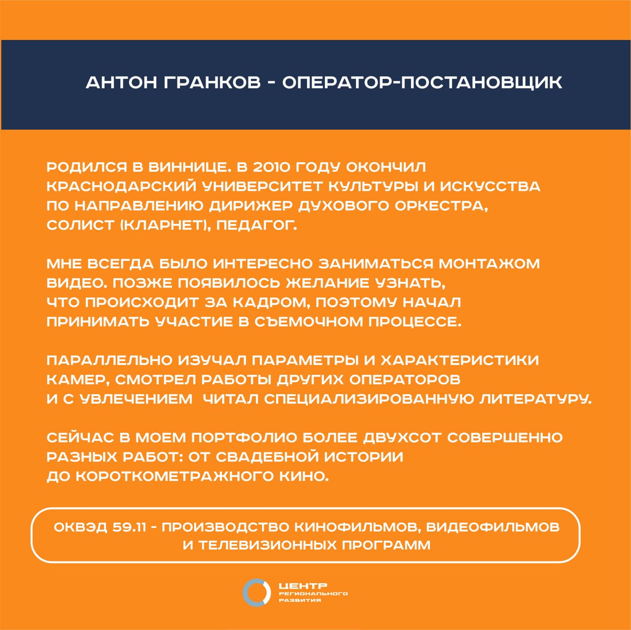 Главная / Деятельность / Креативные (творческие) индустрии / Проект «Креативный Юг: вдохновение, инновации, развитие» / Антон Гранков - оператор-постановщик Антон Гранков - оператор-постановщик