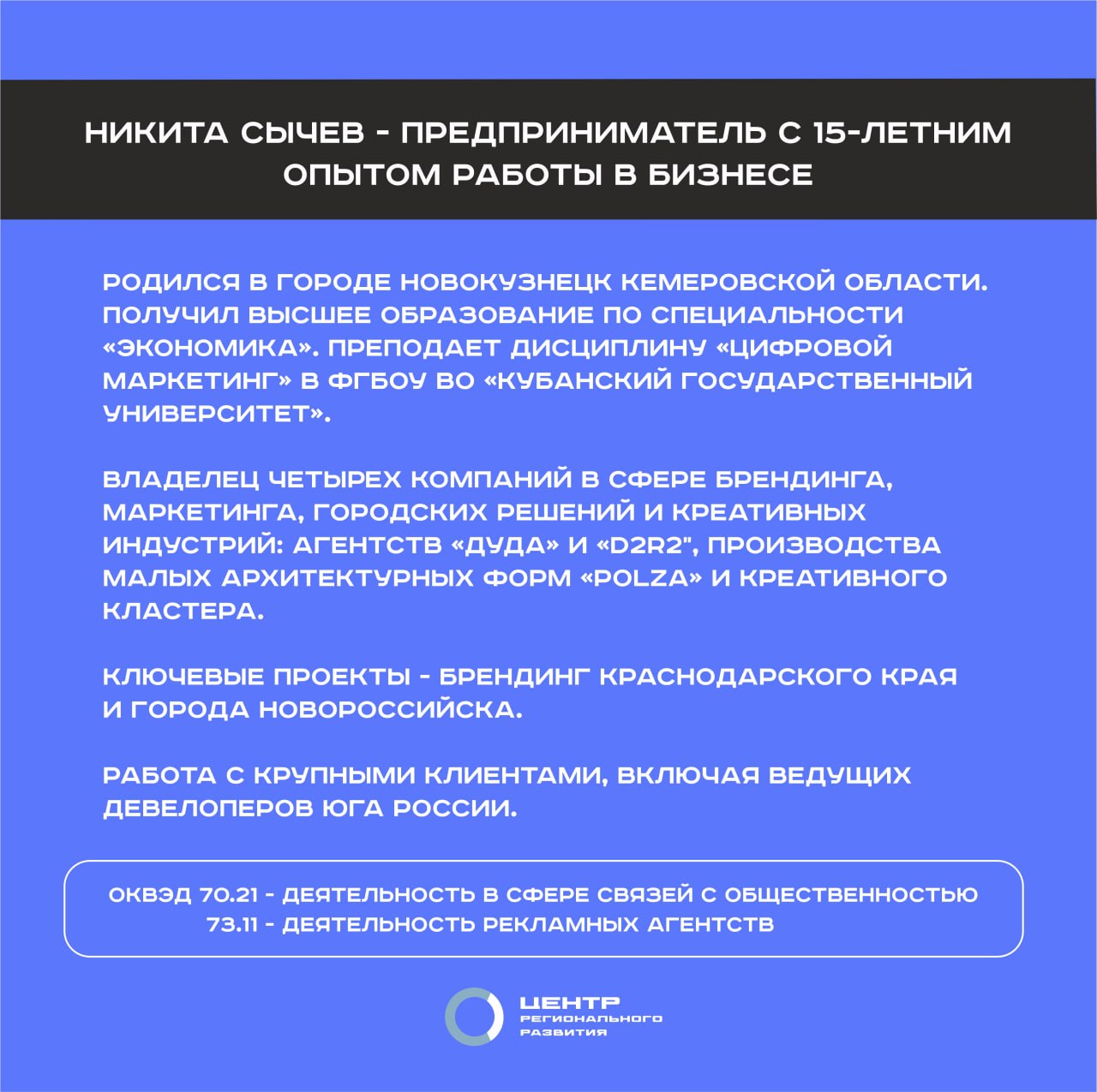 Главная / Деятельность / Креативные (творческие) индустрии / Проект «Креативный Юг: вдохновение, инновации, развитие» / Никита Сычев - директор брендингового агентства Никита Сычев - директор брендингового агентства