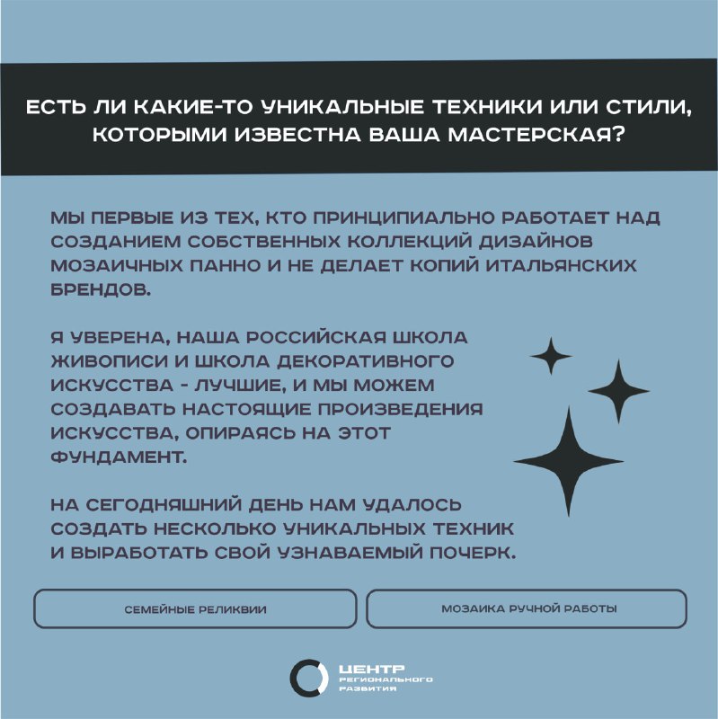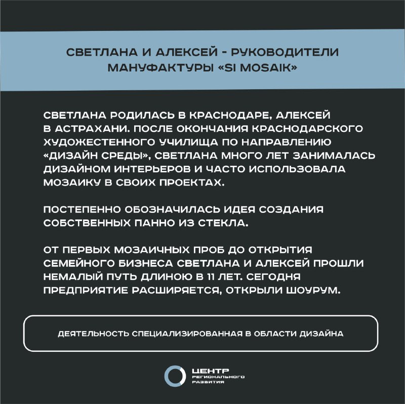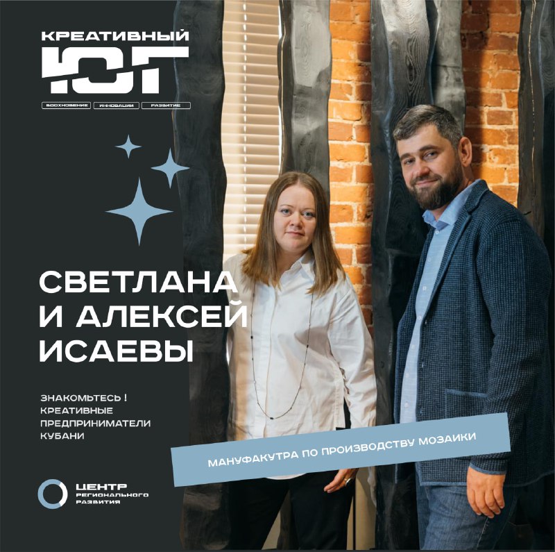 Главная / Деятельность / Креативные (творческие) индустрии / Проект «Креативный Юг: вдохновение, инновации, развитие» / Светлана и Алексей Исаевы - мануфактура по производству мозаики Светлана и Алексей Исаевы - мануфактура по производству мозаики