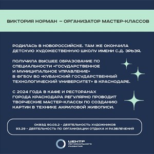 Мы рады представить вам Викторию Норман – преподавателя и вдохновляющего наставника мастер-классов по созданию авторских картин!