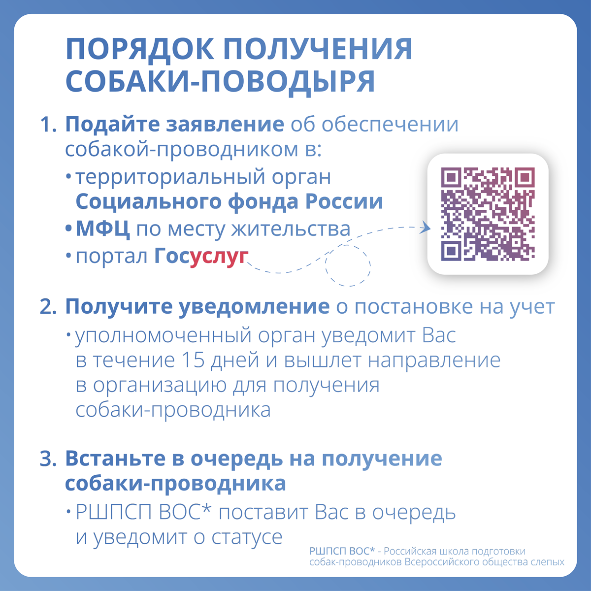 Главная / Деятельность / Вопросы внедрения социальных инициатив / Полезная информация / Как получить собаку-поводыря Как получить собаку-поводыря