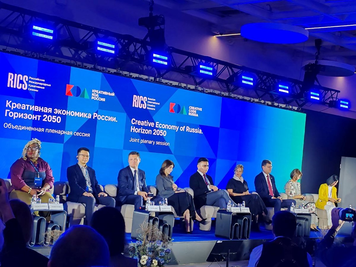 В программе первого дня -пленарная сессия «Креативная экономика в России. Горизонт 2050». Собравшиеся обсудили перспективы развития творческих отраслей, которые уже называют одними из ключевых драйверов мирового экономического роста.