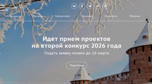 Заявки принимаются до 16 марта 2026 года включительно по ссылке: президентскиегранты.рф/.