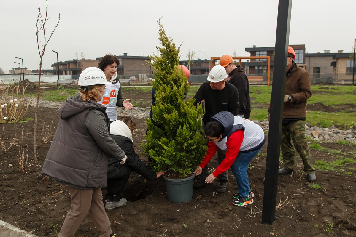 В ходе акции на территории посёлка высажены 12 саженцев купрессоципариса Лейланда Голд Райдер — породы, отличающейся высокой адаптивностью и способностью улучшать качество воздуха.